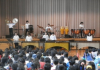 「岡田知之パーカッションアンサンブル」は青少年のための打楽器音楽鑑賞会の開催も重要視し、全国各地の小、中、高校の要望に応えて年間70校以上を訪問し、打楽器音楽の生演奏の魅力を味わっていただくと同時に、打楽器音楽の普及にも力を入れています。
